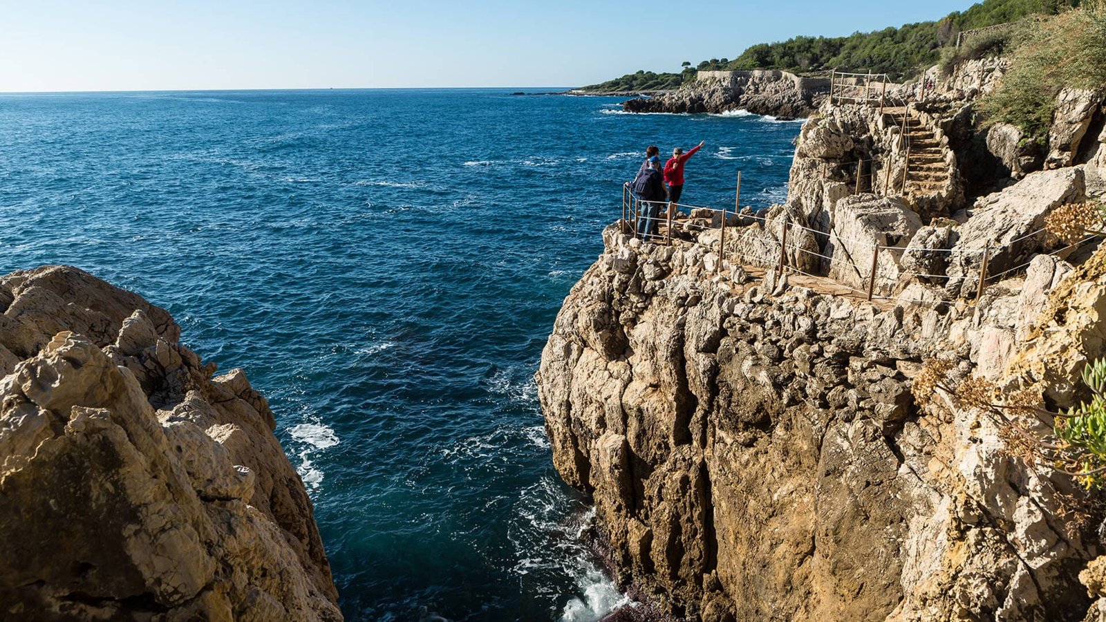 Le sentier du littoral, aussi appelé sentier de Tirepoil, longe la mer depuis la plage de la Garoupe.