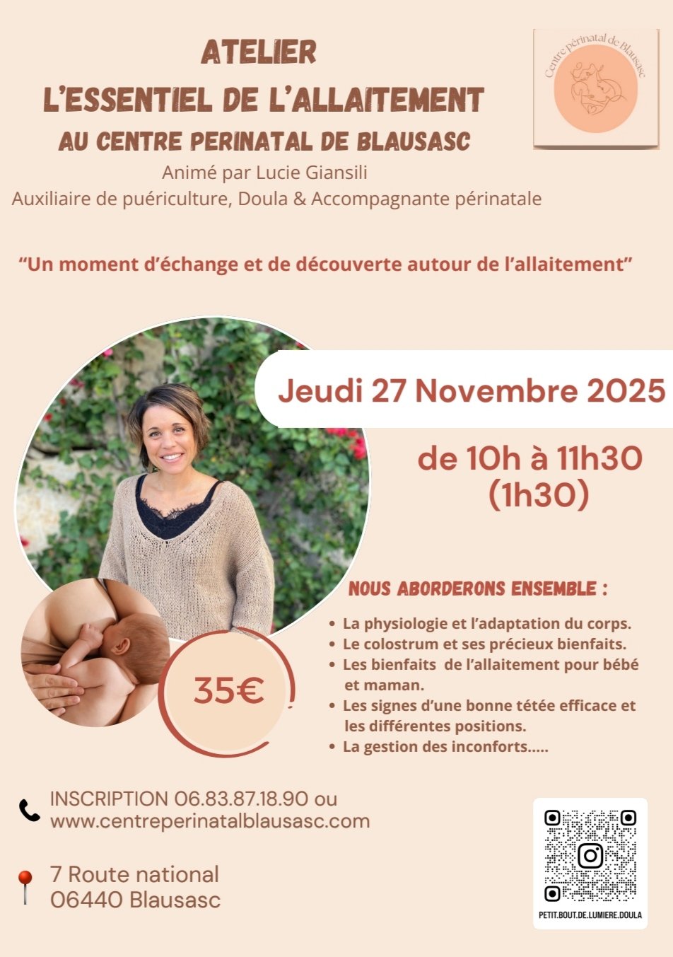 Un atelier idéal pour prendre confiance, poser vos questions et vous préparer en douceur à cette belle aventure de l’allaitement ✨