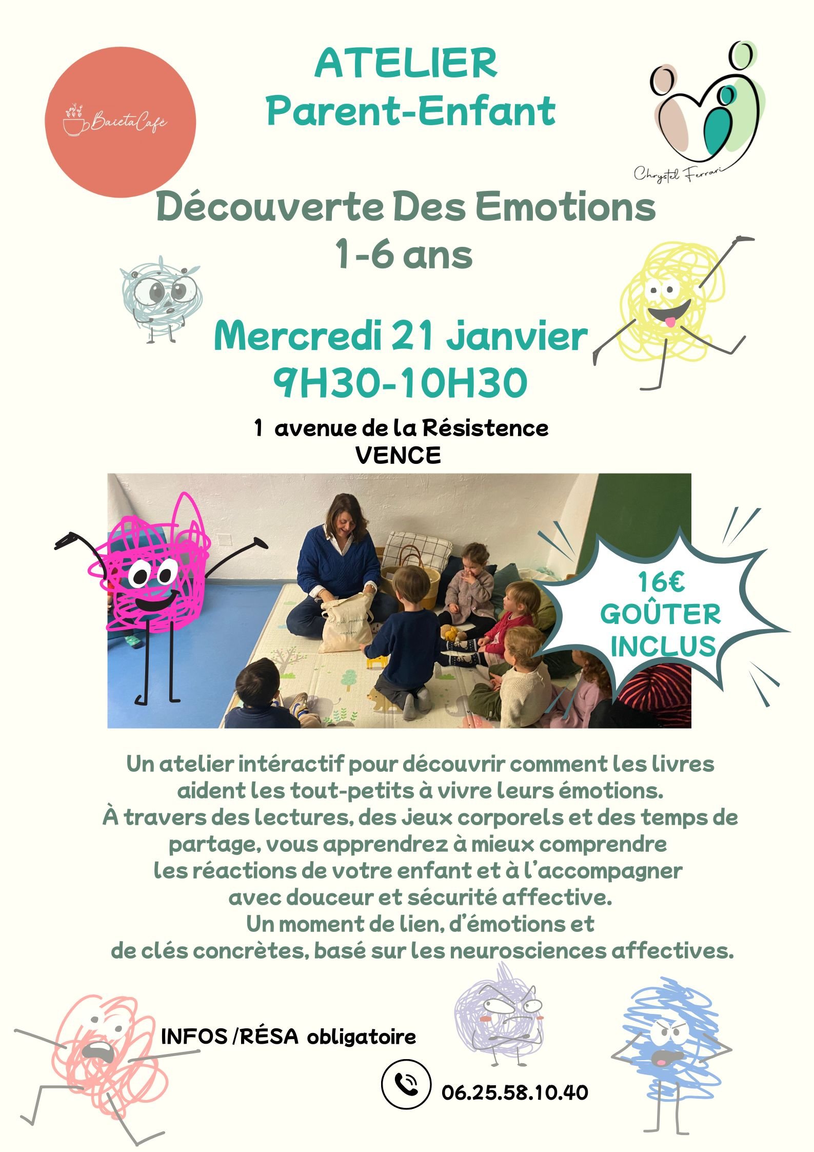 À travers des lectures adaptées, des jeux corporels, des temps de partage et d’échange, cet atelier permet aux enfants de mieux identifier ce qu’ils ressentent, et aux parents d’acquérir des clés concrètes pour accompagner leurs émotions au quotidien.