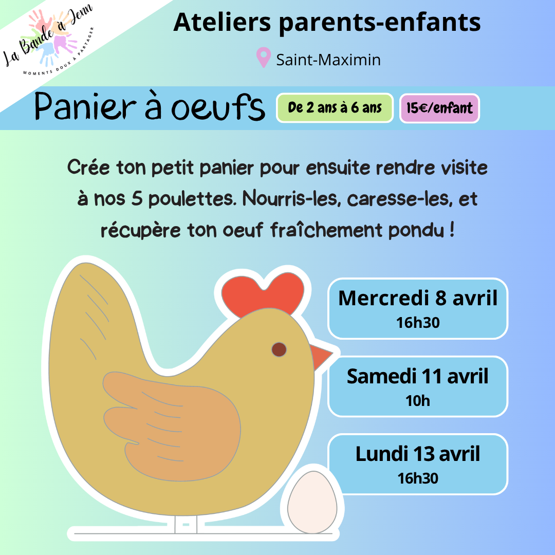 L’atelier parent enfant panier à œufs, proposé par La Bande à Jenn, combine créativité et découverte du monde animal.