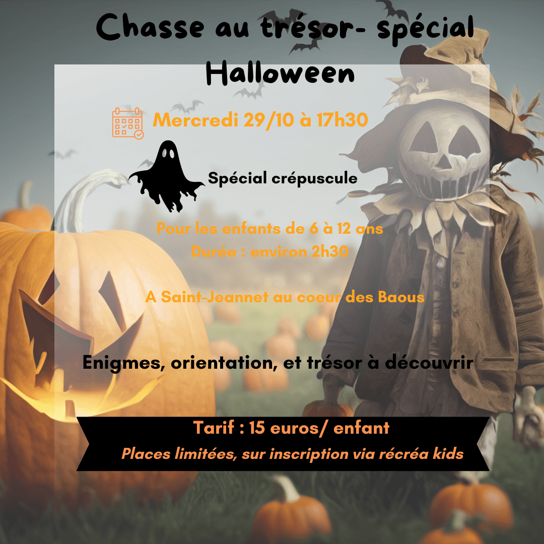 🎃 Chasse au trésor spéciale Halloween – Mercredi 29 octobre à 17h30 – Saint-Jeannet