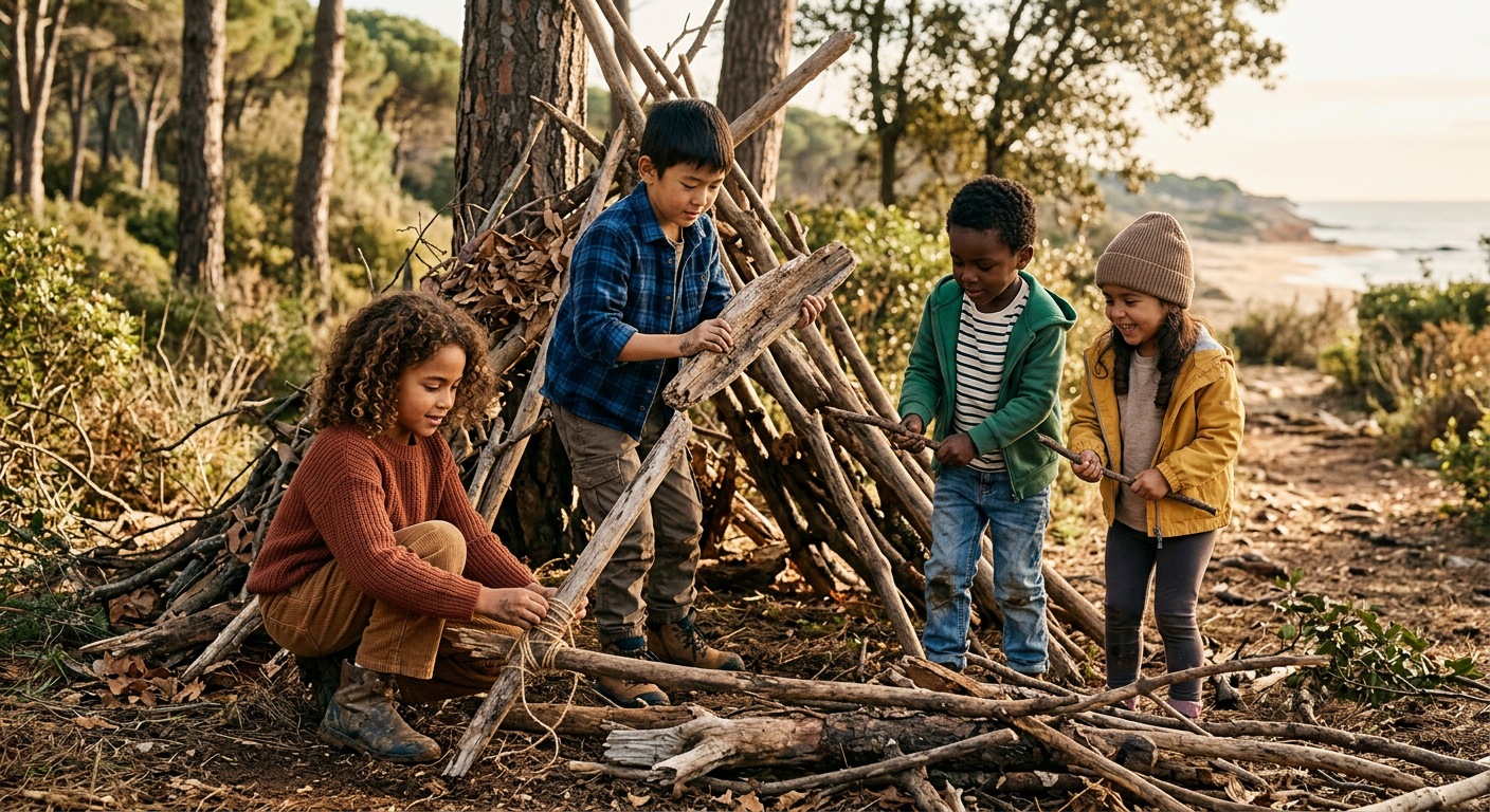 Construction de cabanes : apprendre à assembler des branches et créer son propre refuge.